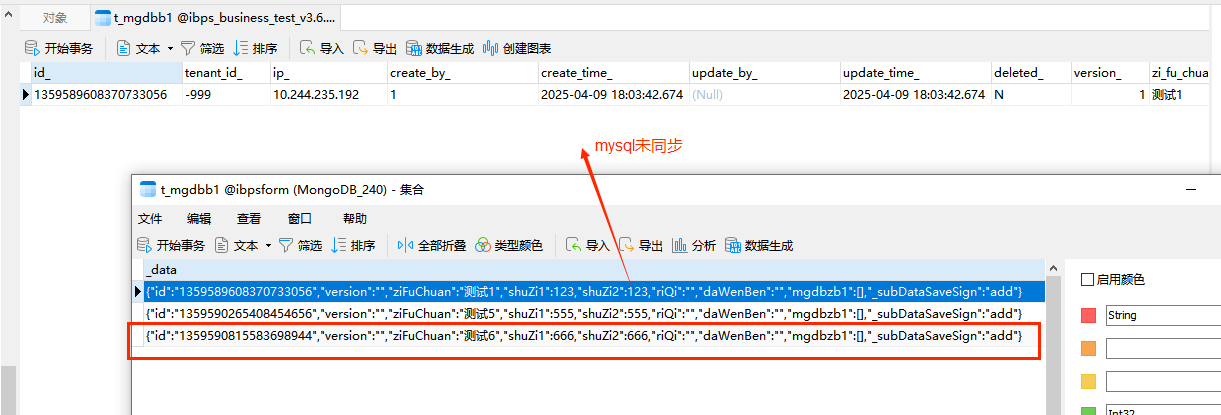(7)查看mongodb、mysql(mongodb存储数据,触发相对时间1分钟后同步到mysql)