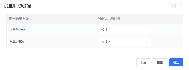 关联配置需要配置唯一标识和展示值,唯一标识是该字段存储数据库的唯一标识(不一定是id或者主键,可以是编号等唯一标识),展示值是作为展示的字段。