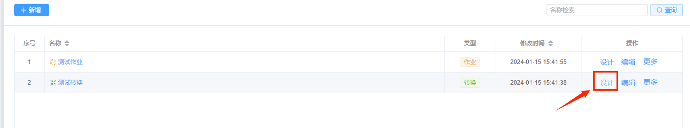 点击【设计】,进入数据处理设计页面